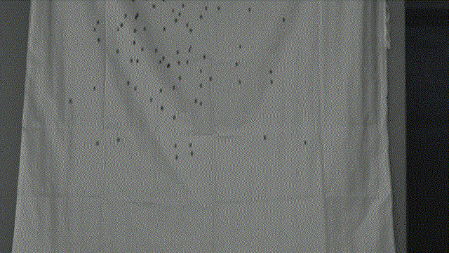 在一項針對數百個快速移動黑色小球進行拋落實驗追蹤驗證中,由于黑色小球表面顏色單一缺乏明顯紋理特征,屬于典型低特征場景,通過空間聚類MOT的幾何重建技術,獲取了黑色小球準確的位置信息,利用2D投影剔除一對多誤匹配方法,提高了軌跡的唯一性和準確性,再進一步通過對軌跡進行擬合分析識別并修正錯誤軌跡連接,增強跟蹤結果的穩定性和可靠性。